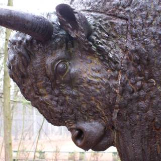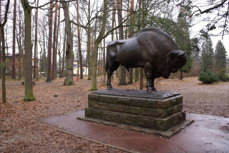 Historia żeliwnego posągu, powszechnie uznawanego za nieoficjalny herb Spały, zaczyna się od carskiego polowania, które odbyło się w październiku 1860 r. w Puszczy Białowieskiej. Dla upamiętnienia tego wydarzenia car Aleksander II polecił ustawić na miejscu łowów posąg żubra naturalnej wielkości. Pomnik stanowił atrakcję Zwierzyńca w pobliżu Białowieży. Zawirowania wojenne sprawiły, że został wywieziony do Moskwy, następnie przywieziony do Polski i usytuowany w Warszawie. W 1928 r. na polecenie Prezydenta RP Ignacego Mościckiego posąg żubra sprowadzono do Spały.