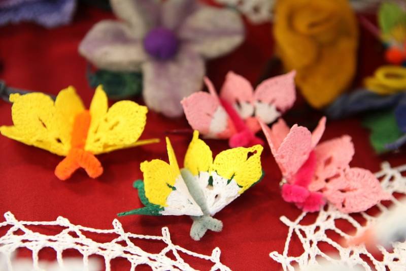 obrusy, serwety, firanki a także czapki i dodatki do czapek. Wszystkie