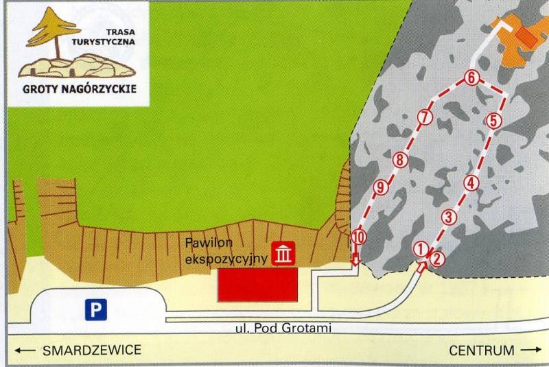 Dzięki środkom Unii Europejskiej urządzono w grotach podziemną trasę turystyczną o długości 160 m. Przebiega ona dwoma równoległymi, oświetlonymi chodnikami i zawiera ekspozycje historycznie i tematycznie związane z grotami. Czas zwiedzania z przewodnikiem ok. 40 min. w grupach od 5 do 25 osób. Temperatura wewnątrz ok. 9° C. Wilgotność ok. 65-85%. Obiekt jest dostępny dla osób niepełnosprawnych. To produkt turystyczny unikalny w skali światowej i jest pierwszym tego typu obiektem w rejonie centralnej Polski.
