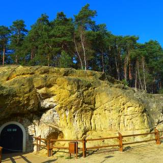 Groty składają się z licznych korytarzy, wnęk, zaułków i sal powstałych w trakcie procesu wydobywania piasku. Największe wyrobisko zwane "Salą Królewską" ma 30 m długości, 25 m szerokości, 3 m wysokości. Pozostałe jaskinie nosiły nazwę: Niedźwiedzia, Borsucza, Taneczna, Chowańcowa, Karkołomna i Złodziejska.