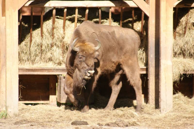 Jedyna tego typu placówka w Polsce centralnej. Powstał w latach 1934-1936. Został utworzony w wyniku jednej z pierwszych na świecie akcji, zainicjowanej przez polskie środowiska naukowe. Pierwsze bizony sprowadzono z Kanady w darze od Polonii dla Prezydenta Rzeczypospolitej Polskiej - Ignacego Mościckiego. W zwierzyńcu pierwszy żubr europejski urodził się w 1963 r. Od 1973 r. obiekt miał charakter rezerwatowej hodowli zamkniętej żubrów białowieskiej linii genetycznej. Od 1976 r. ośrodek znajduje się pod zarządem Kampinoskiego Parku Narodowego. Obecnie zajmuje powierzchnię 72,4 ha. Liczebność stada hodowlanego utrzymywana jest na poziomie 20 sztuk. Na terenie zagrody można nie tylko zobaczyć rodzinę żubrów, ale też dzięki informacjom umieszczonym na tablicach zapoznać się z biologią gatunku, historią jego wymierania oraz restytucji, a także dziejami OHŻ.