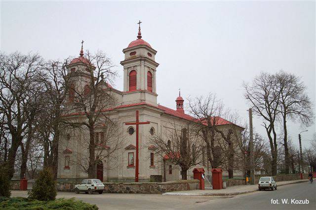 Powstał z inicjatywy ks. Mieczysława Skarżyńskiego według projektu architekta Kornela Szrettera w latach 1889-1891, w miejscu starego drewnianego kościoła. Dwuwieżowy murowany kościół, który stoi do dziś, reprezentuje architekturę neorenesansową. W kościele zachowanych zostało wiele dzieł sztuki z dawnego kościoła drewnianego, m. in. obraz szkoły weneckiej „Święta rodzina”. Zachowana została również chrzcielnica z XVI wieku z dwiema kropielnicami piaskowymi zdobionymi herbem Poraj oraz portret ks. Jędrzeja Kitowicza.