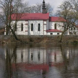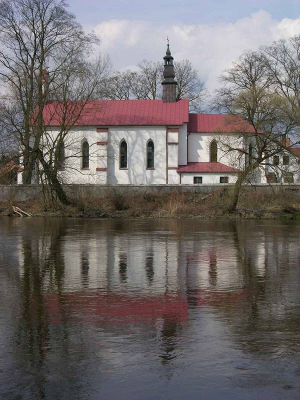 Inowłodza, nad samym brzegiem Pilicy. Jest to budowla orientowana, jednonawowa