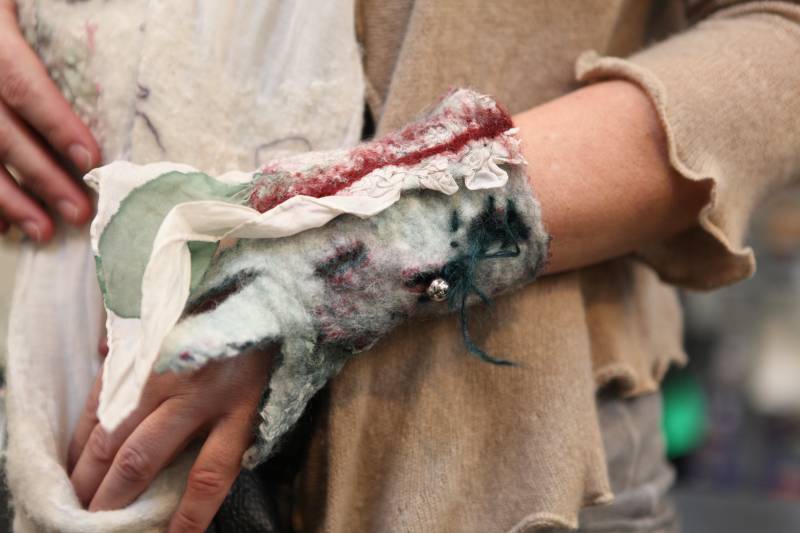 Zajmuje się tkaniną unikatową, najczęściej filcem, tworzy z