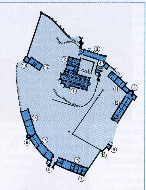 silnie rozwiniętymi klasztornymi obwarowaniami późnośredniowiecznymi.