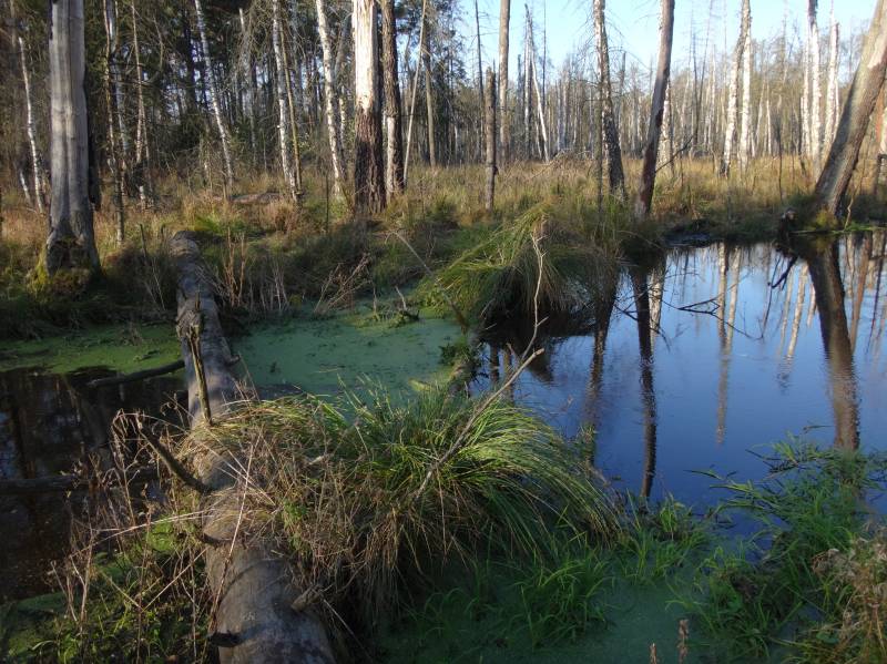 Przy granicy obszaru z terenami zabagnionymi wykształciły się płaty boru