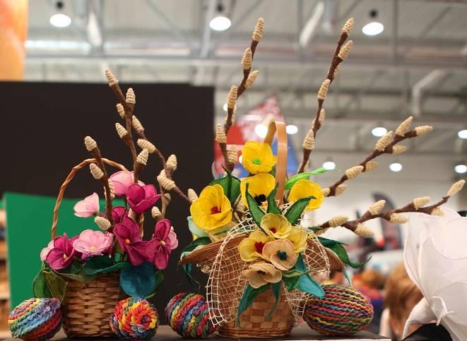 kwiatów, niekiedy całych kompozycji, palm, stroików wielkanocnych,