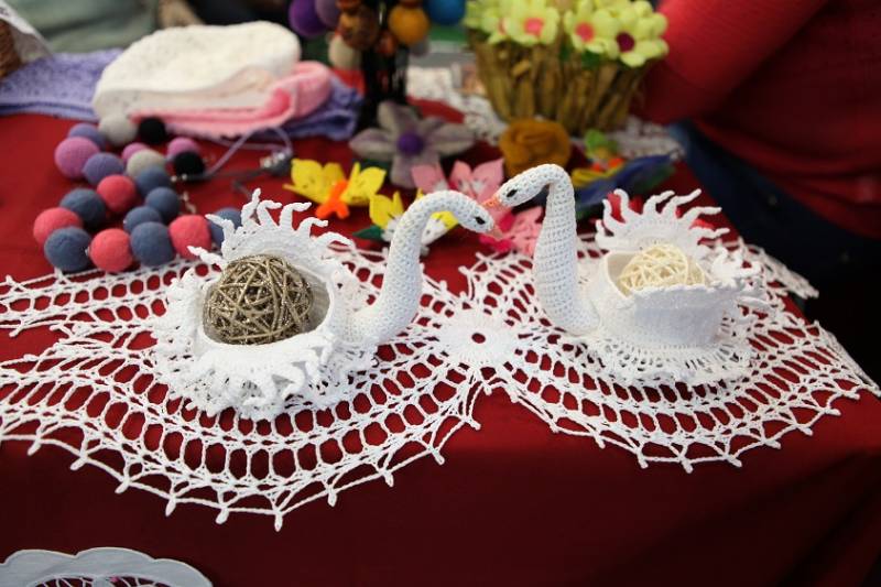 obrusy, serwety, firanki a także czapki i dodatki do czapek. Wszystkie