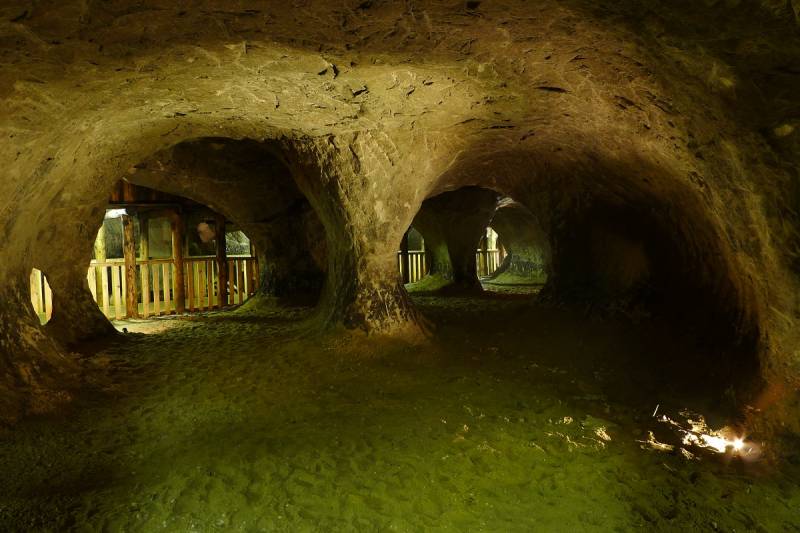 Groty składają się z licznych korytarzy, wnęk, zaułków i sal powstałych w trakcie procesu wydobywania piasku. Największe wyrobisko zwane "Salą Królewską" ma 30 m długości, 25 m szerokości, 3 m wysokości. Pozostałe jaskinie nosiły nazwę: Niedźwiedzia, Borsucza, Taneczna, Chowańcowa, Karkołomna i Złodziejska.