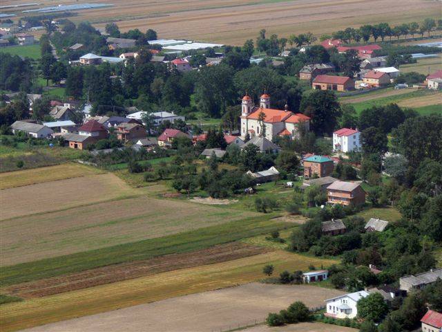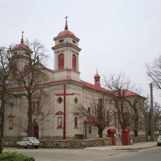 Powstał z inicjatywy ks. Mieczysława Skarżyńskiego według projektu architekta Kornela Szrettera w latach 1889-1891, w miejscu starego drewnianego kościoła. Dwuwieżowy murowany kościół, który stoi do dziś, reprezentuje architekturę neorenesansową. W kościele zachowanych zostało wiele dzieł sztuki z dawnego kościoła drewnianego, m. in. obraz szkoły weneckiej „Święta rodzina”. Zachowana została również chrzcielnica z XVI wieku z dwiema kropielnicami piaskowymi zdobionymi herbem Poraj oraz portret ks. Jędrzeja Kitowicza.