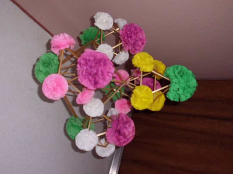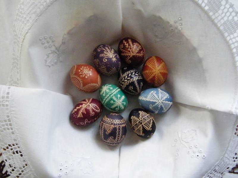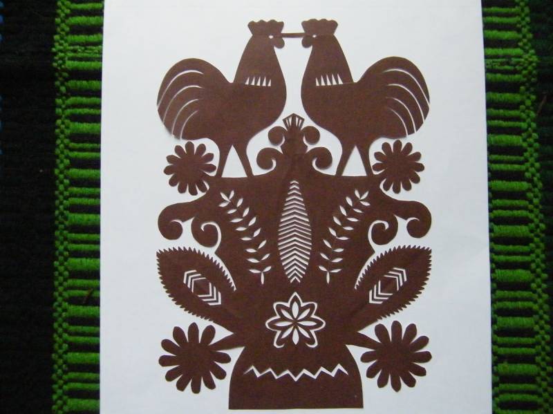 wyszywanie, wycinanki, kwiaty z bibuły, pisanki, pająki z grochu lub słomy, rózgi,