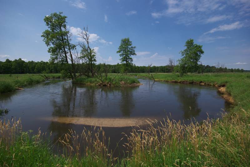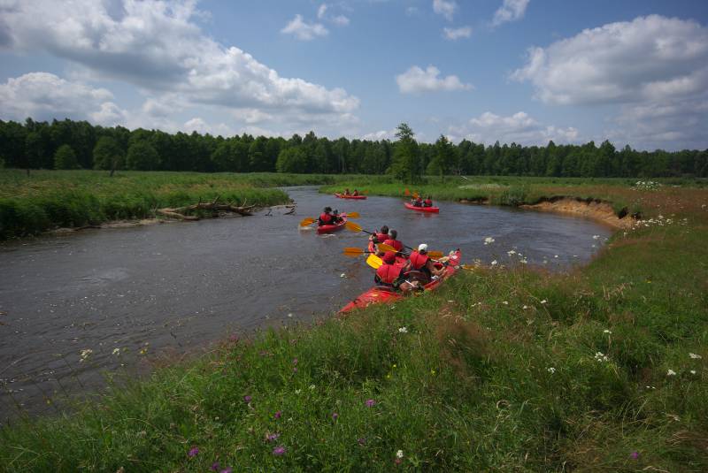 Około 15km spływ rozpoczynamy w centrum Szczekocin w sąsiedztwie okazałego XVIII w. zespołu parkowo-pałacowego Dembińskich.