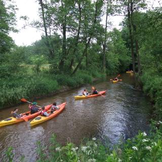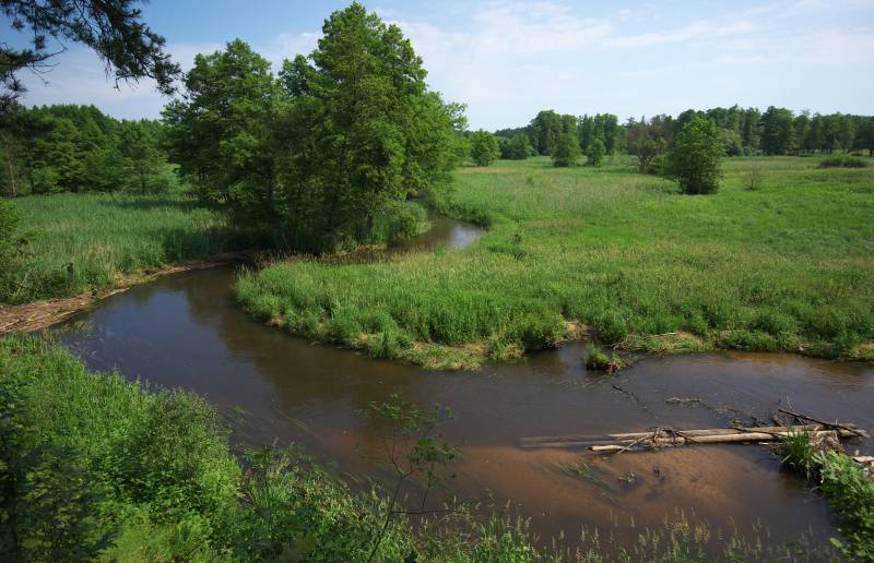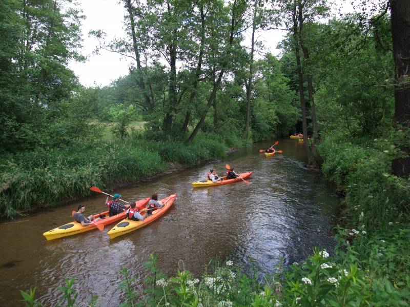 Spływ rozpocząć najkorzystniej jest z brodu (bywa bardzo płytko) na Żebrówce w Starej Wsi, by po kilkudziesięciu metrach wpłynąć na Krztynię.